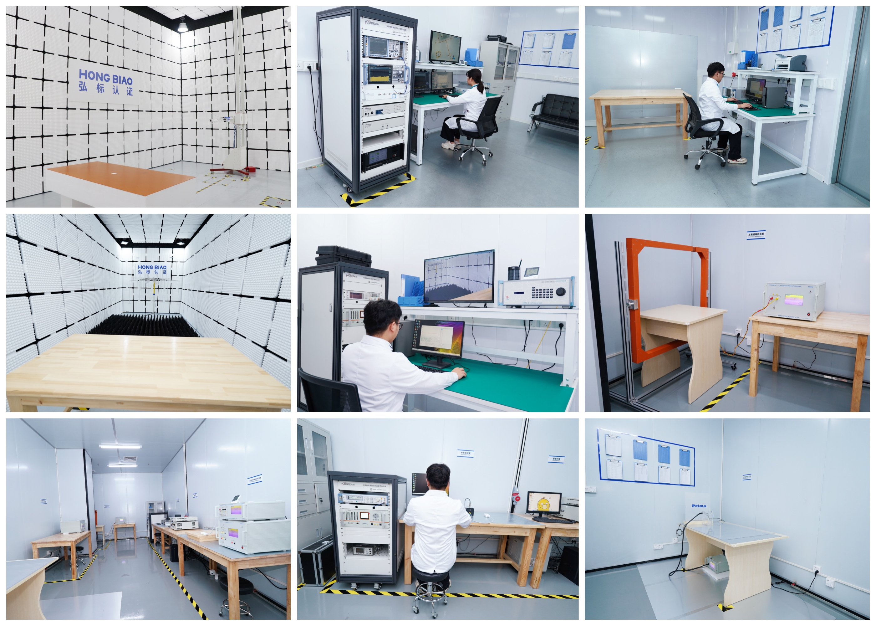 弘标EMC电磁兼容实验室位于深圳光明区,占地面积超2000平方米,严格按照实验室质量体系ISO/IEC17025运行。硬件包括:一间标准3米法电波暗室,一间辐射抗扰度电波暗室,一间传导屏蔽室,一间静电(ESD)测试室,一间抗干扰实验室。配备德国R&S公司电磁兼容测试系统,设备均采用R&S和keysight最先进型号,并保持每年进行技术更新。