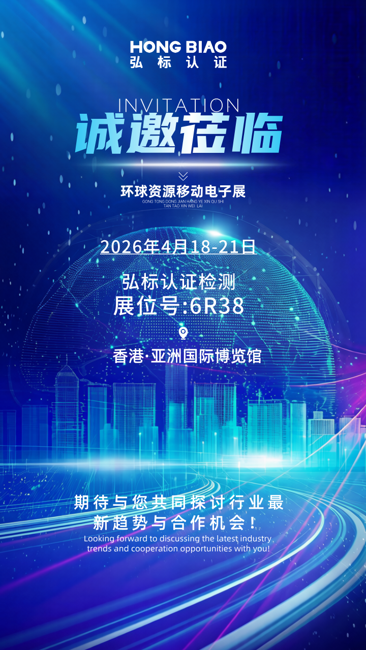 弘标认证检测与您相约香港环球资源春季移动电子展,期待您的莅临!
