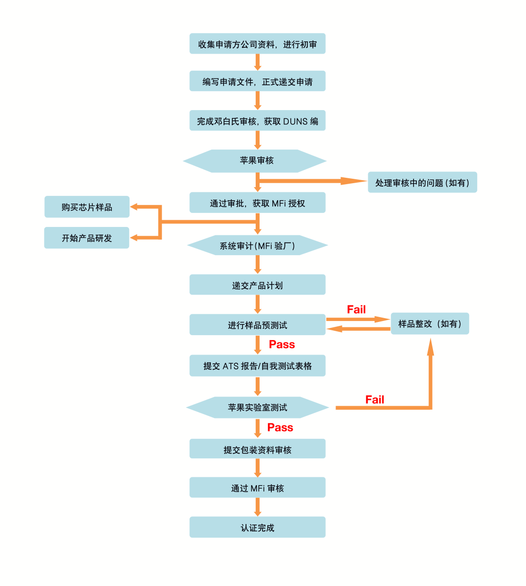 ►第四步,上传自测报告/产品认证测试:申请在或得PPID批准后按照要求完成样品制作,并进行自测,将自测报告上传至MFi系统。在完成自测后送样品到苹果的实验室对产品进行认证测试。